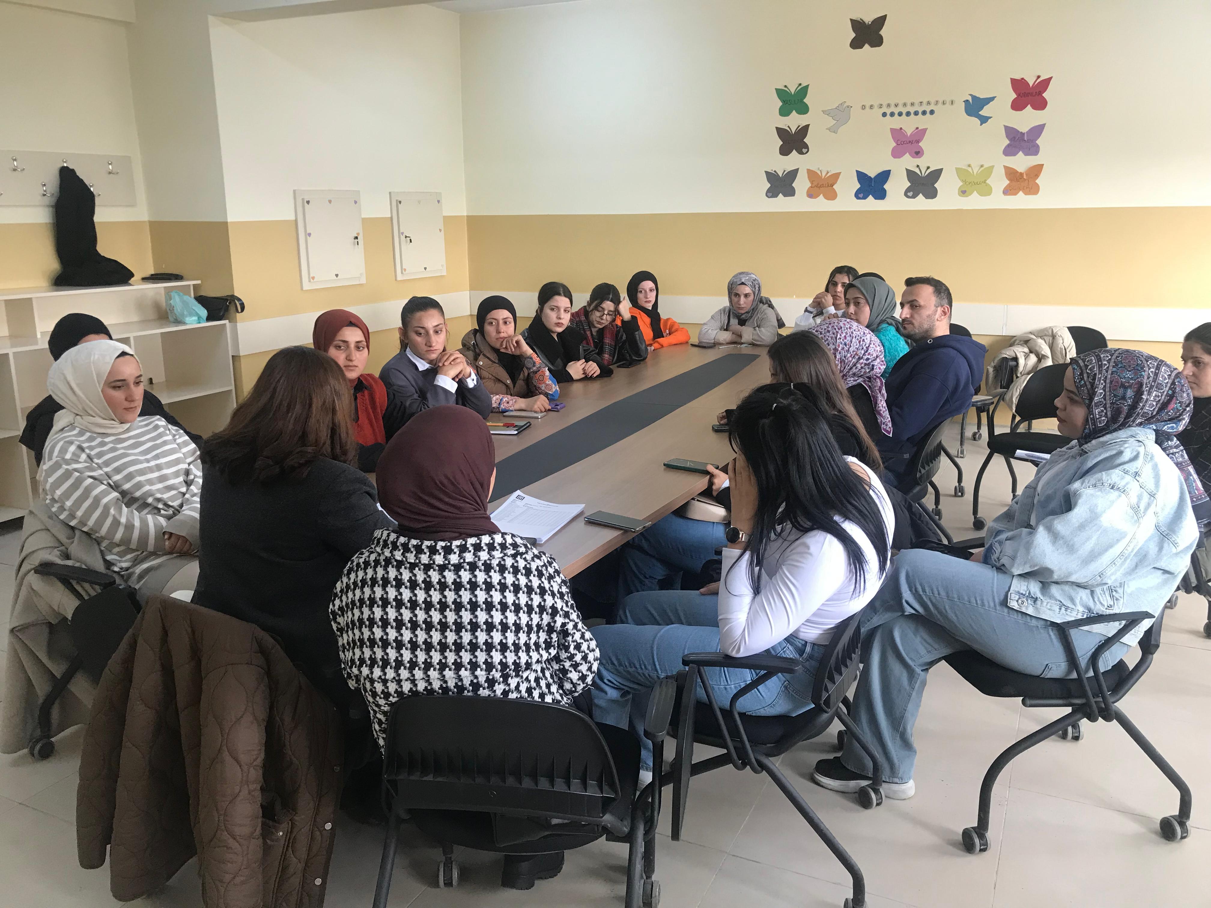 Muş Alparslan Üniversitesi Bulanık Meslek Yüksekokulu Sosyal Hizmet ve Danışmanlık Bölümü tarafından düzenlenen "Üniversite Öğrencilerinin Kaygıları ve Baş Etme Yöntemleri" konulu grup çalışması etkinliği, yoğun ilgi gördü. Bölüm Başkanı Öğr. Gör. Bekir ALTIOK'un koordinatörlüğünde gerçekleştirilen etkinlikte, Bulanık Sosyal Hizmet Merkezi Müdürü Psikolog Mihran Yaman grup lideri olarak konuk edildi. Etkinlik, öğrencilerin akademik ve sosyal yaşamlarında karşılaştıkları kaygılarla başa çıkma yöntemleri üzerine gerçekleştirilen psikoeğitim çalışmasıyla başladı.
